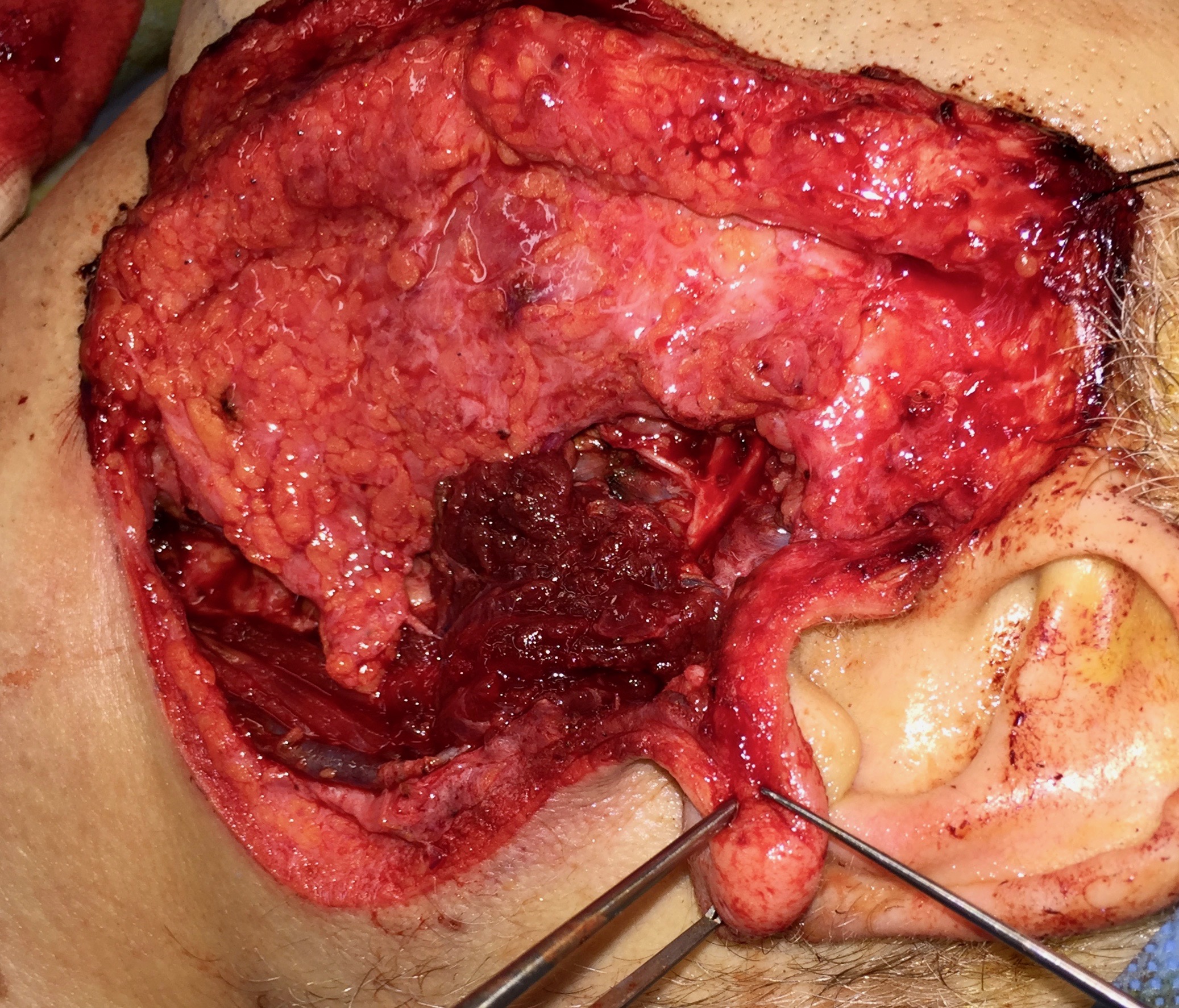 At the end of the parotidectomy procedure, Dr. Yousefpour will ensure that the hollow left by the surgical removal of the gland and tumor is filled by transferring a muscle flap (a segment of the nearby sternocleidomastoid muscle).